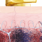 Al depositarse en esa capa, la tinta queda fijada de forma permanente, ya que el organismo no puede eliminarla fácilmente por sí solo.