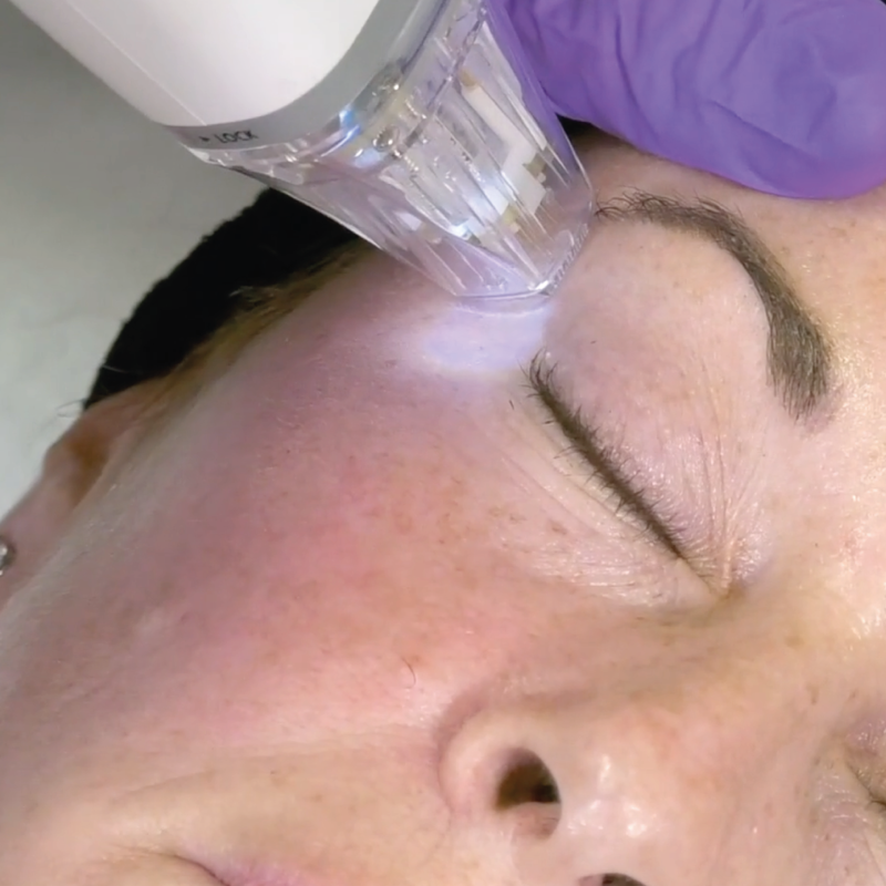 Durante el tratamiento facial, las microagujas penetran de forma controlada en la piel y liberan energía térmica de radiofrecuencia en las capas profundas del dermis.
